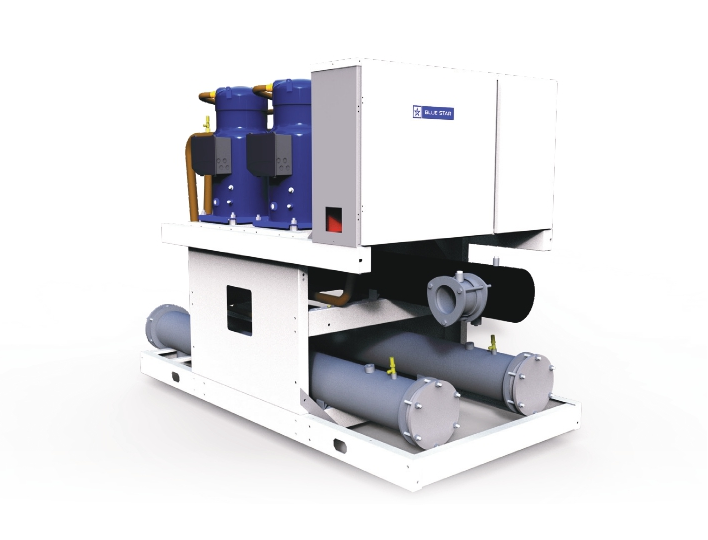 Wherever water can be provided, Blue Star’s water cooled scroll chillers offer higher efficiency than air cooled systems as water is a superior cooling medium compared to air. These chillers comprise of cooler, multiple hermetic scroll compressors and Shell & Tube water cooled condenser. Because of their higher efficiency, water cooled chillers consume lower power compared to air cooled systems.